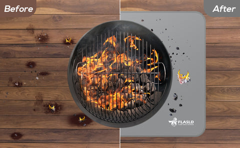 Our grill mat works wonders to protect your decks and lawn from the heat of your fire pit, but you can also use it beneath your fireplace, smokers, grills, stove and BBQs. This under grill mat stays safely in place under your grill to collect any spills, Ember and splatters. Protect your deck, patio, grass, floor or other surface from water, sauce, grease, and oil. The grill mat provides a protective barrier without staining the surface underneath. Keep the ground clean.
