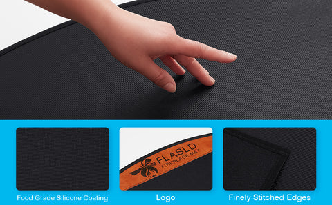 FLASLD fireplace mats are waterproof, thanks to our coating of a layer of food-grade liquid silicone on the surface of the fireplace mats, which can effectively prevent water penetration.
