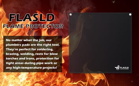 The FLASLD 18 inches x 18 inches Magnet Welding and Soldering Heat Shield Plumbers Pad is a non-flammable silicone fiber fabric that provides effective protection against sparks, flames, and intense heat. Made from silicone coated fiberglass cloth that can be used for any light to heavy duty welding applications. It can withstand up to 2000° F and will not burn, melt or shrink and remains flexible with a soft cushion after use. Our PlumbersPad is an essential item for plumbers, mechanics, welding shops, and for many do it yourself projects.