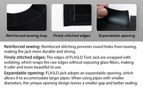 The temperature of the combustion inside the camping stove is usually over 1000°F, and the temperature of the exhaust pipe of the stove is usually over 550°F, and the ordinary tent fabric cannot withstand such a high temperature at all, and the tent fabric will be damaged by the high temperature and even cause a fire. FLASLD stove jack has a maximum temperature resistance of 1000°F, and the stove exhaust pipe will not cause damage to it.